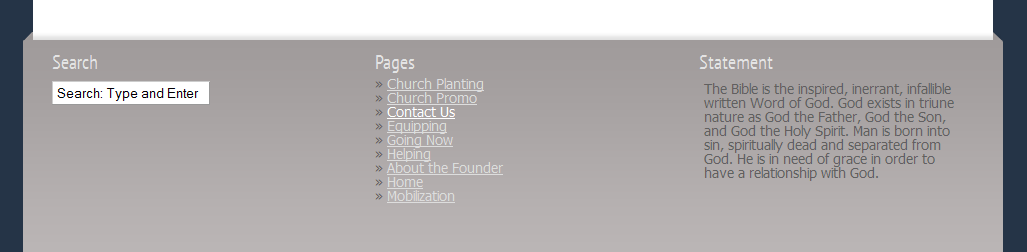 Client is a missionary in Brazil, and wanted an updated look for the mission web site. Theme drafted in Photoshop, with a dark blue and gray color scheme. After initial approval theme written using a custom starter theme. After obtaining the content for the site written by the client, pages were created and styled.
